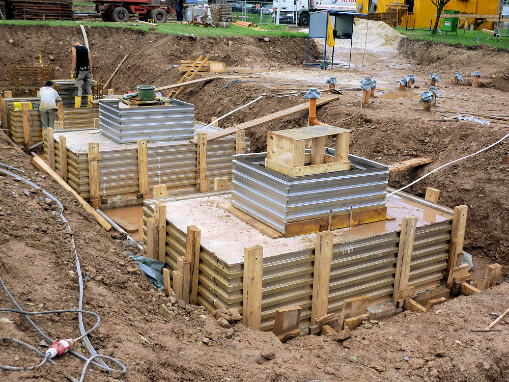 The shuttering tubes are pressed for approx. 2-3 cm into the fresh concrete of the blinding layer or the pressure plate. After setting the concrete the tube is then fixed and secured against up-lift.